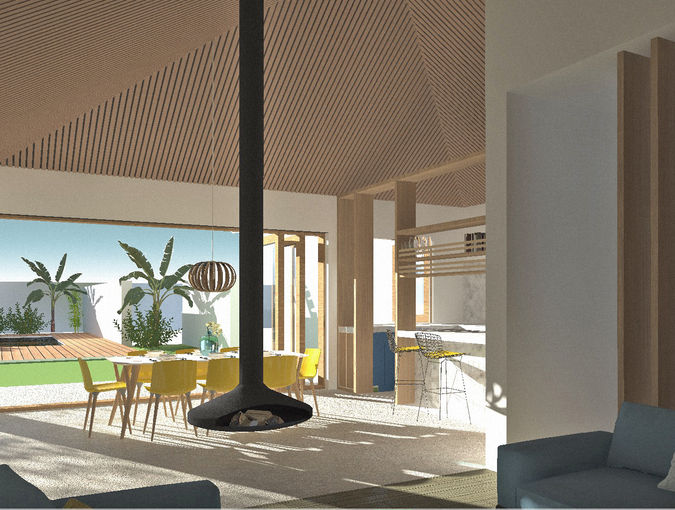 The goal was to create a seamless connection between the ground floor and the garden while reimagining the space with a more open-plan layout. Previously, the living area felt dark and isolated from the rest of the house. By incorporating the existing gallery into the living space, the room is now flooded with natural light and flows effortlessly into the garden. The design further enhances the space by transforming the existing pitched ceiling into a striking wood-clad feature, adding warmth and character to the living area.